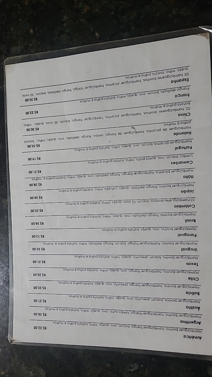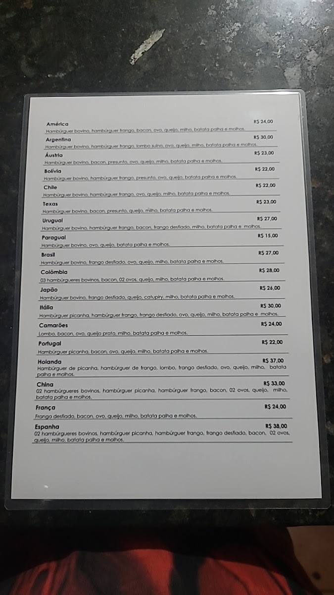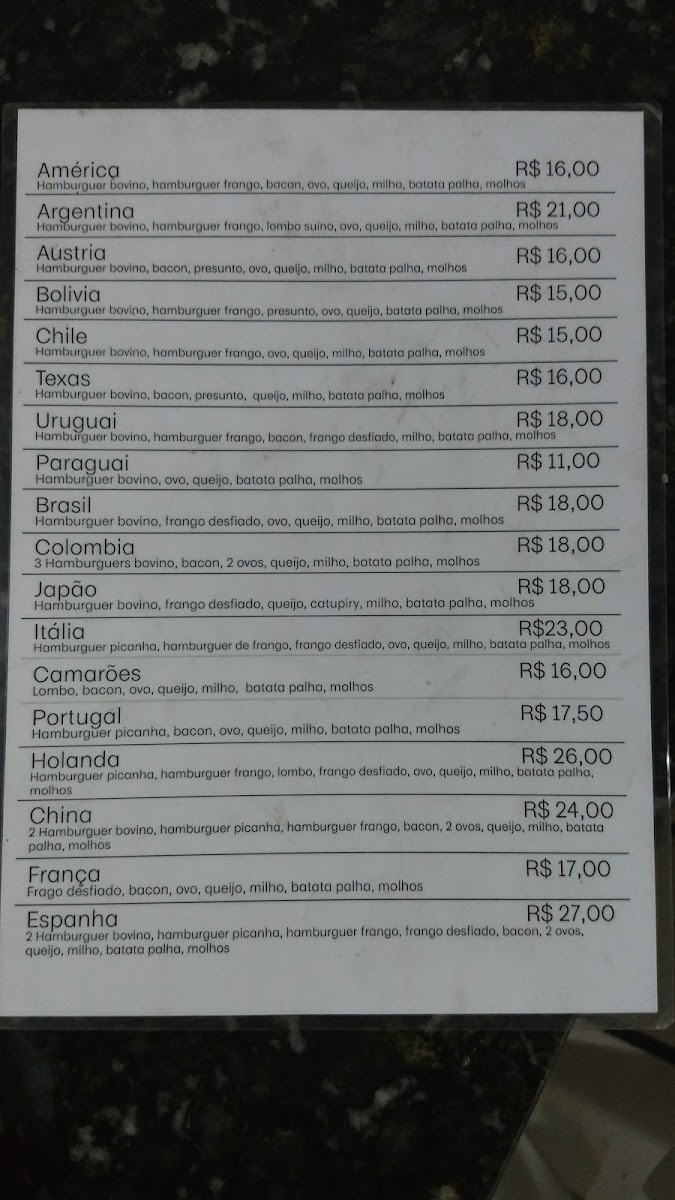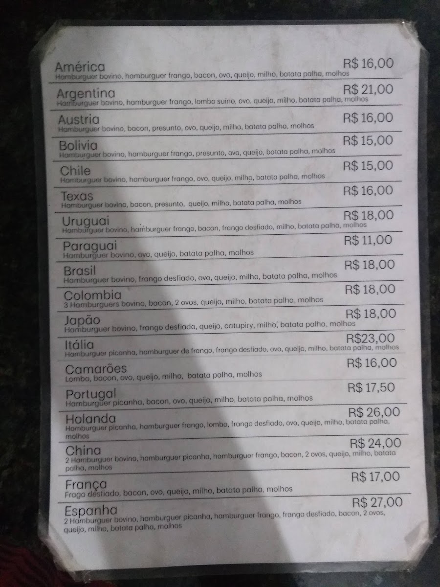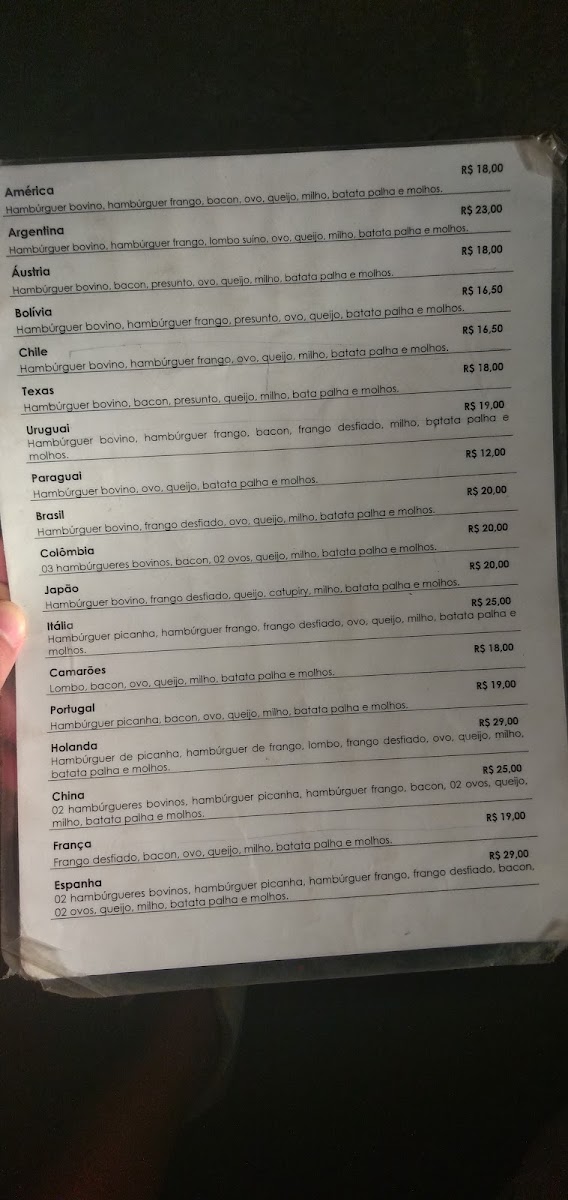 Delicious Offerings: The menu boasts mouth-watering options, with the "Colômbia" burger being a standout for its rich taste and substantial portion.